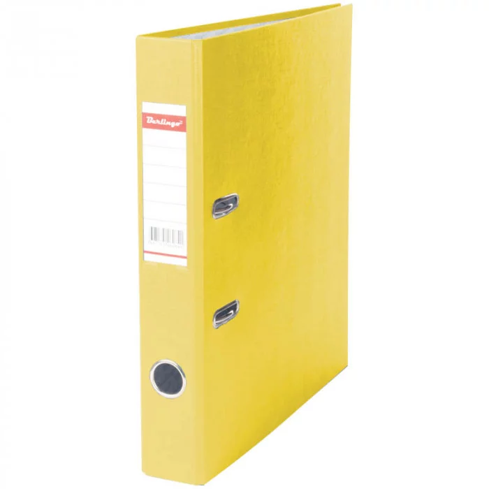 Папка–регистратор Berlingo серии Standard размером А4 (320*290*50 мм) с обложкой из жесткого износостойкого картона с односторонним покрытием из бумвинила. Вместимость папки – 450 листов, ширина корешка – 50 мм. Цвет – желтый. Конструкция разработана с учетом всех особенностей эксплуатации. Папка выгодно отличается надежным арочным механизмом из качественного металла, наличием кармана на корешке со сменным информационным ярлыком для маркировки, полем для записей на внутренней стороне обложки и отверстием для удобного снятия с полки. Папка предназначена для транспортировки, упорядочивания и хранения бумаг. Вместимость, в листах: 450; Формат: А4; Цвет папки: желтый; Ширина корешка: 50 мм.