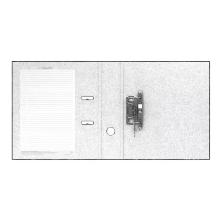 Папка - регистратор формата А4 снабжена стальным арочным механизмом с никелевым покрытием. Изготовлена из картона толщиной 1,75 мм, покрытого бумагой «под мрамор». На корешке шириной 70 мм изображена этикетка для маркировки. Для удобства использования на корешке имеется металлическое кольцо для захвата. Металлические фиксаторы удерживают папку в закрытом виде даже при максимальном наполнении. Вместительность 450 листов бумаги плотности 80 г/м?. На форзаце есть шаблон для оглавления. Папка предназначена для сдачи отчетной документации, последующего архивирования документов и хранения их в папке.