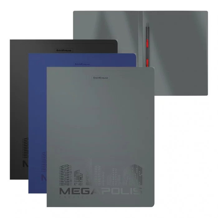 Папка-скоросшиватель пластиковая с пружинным механизмом ErichKrause MEGAPOLIS, A4, ассорти 1шт 50132