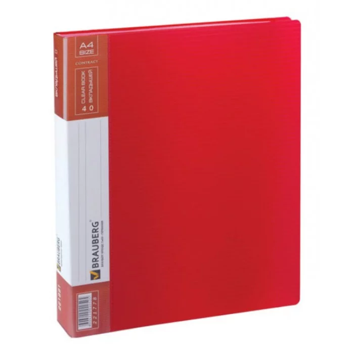 Папка 40 вкладышей BRAUBERG "Contract", красная, вкладыши-антиблик, 0,7 мм, бизнес-класс, 221778