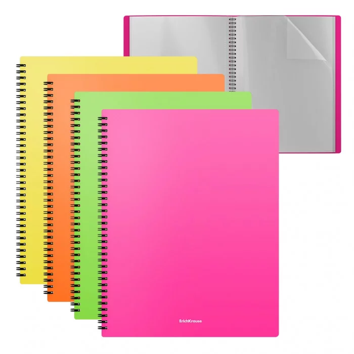 Папка файловая пластиковая на спирали ErichKrause Matt Neon, с 20 прозрачными карманами, A4, ассорти 1шт 49953
