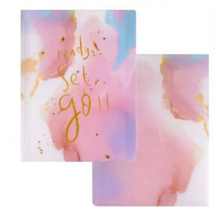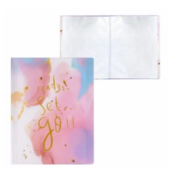 Папка с 20 вкладышами Alingar А4 310х235 мм пластик 400 мкм мраморный дизайн с надписью "Ready" розовый 1шт AL12804/1