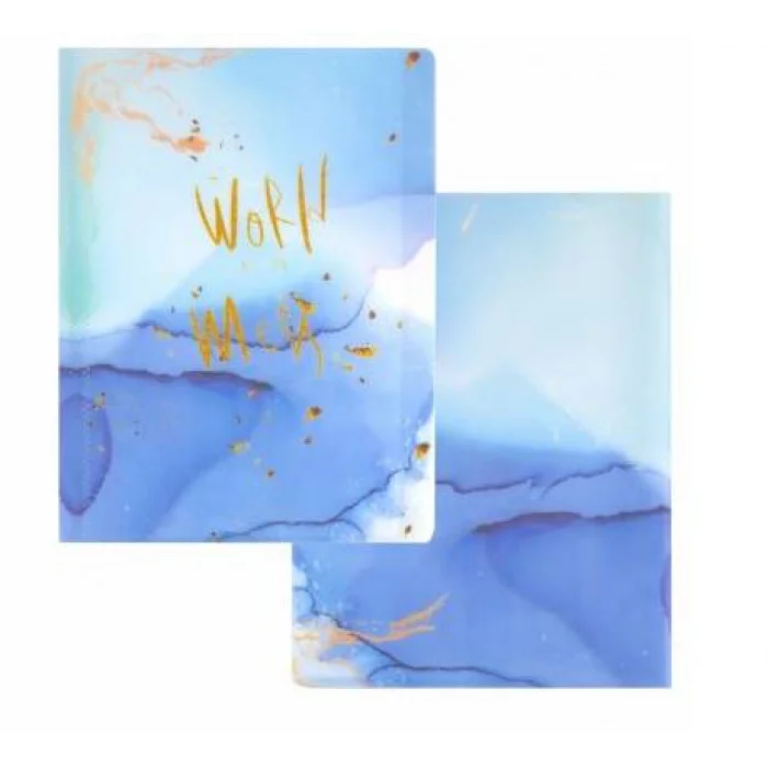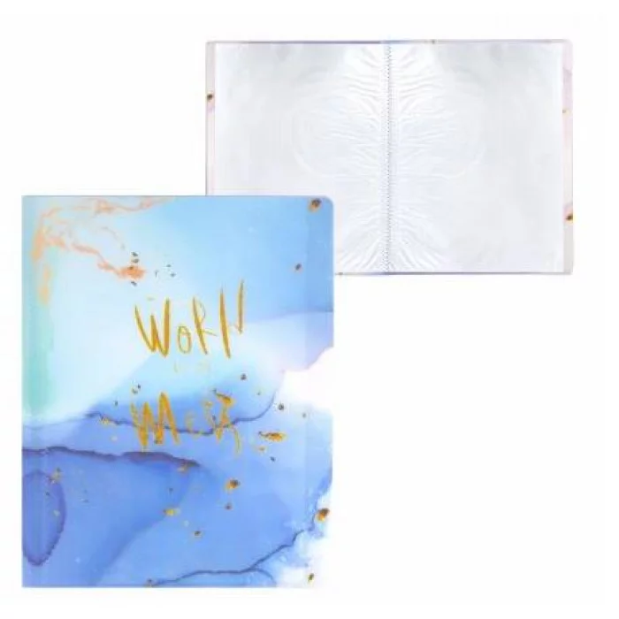 Папка с 20 вкладышами Alingar А4 310х235 мм пластик 400 мкм мраморный дизайн с надписью "World" голубой 1шт AL12804