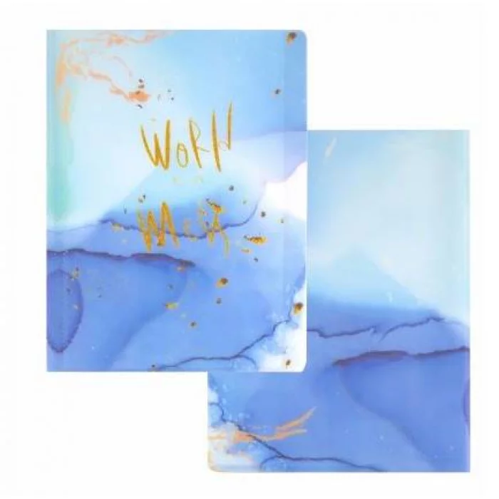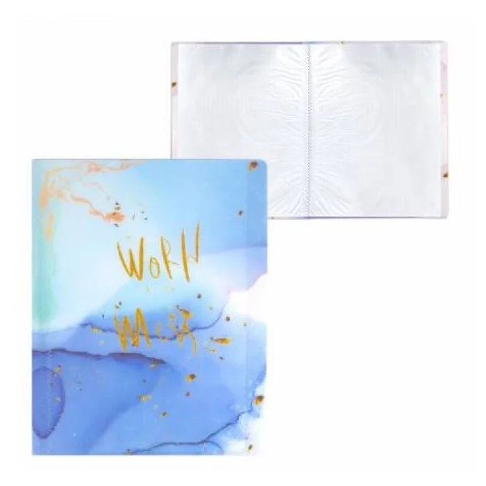 Папка с 30 вкладышами Alingar А4 310х235 мм пластик 400 мкм мраморный дизайн с надписью "World" голубой 1шт AL12805