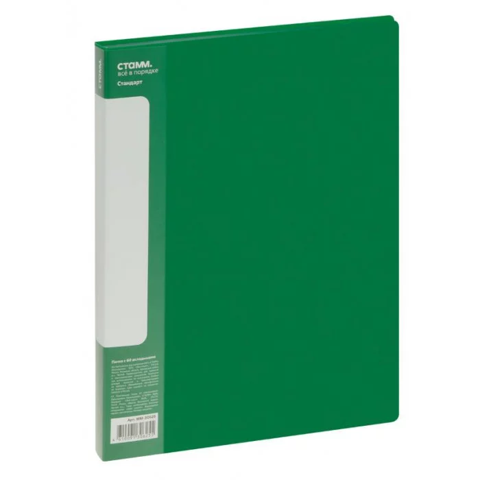 Папка с 60 вкладышами СТАММ "Стандарт" А4, 21мм, 700мкм, пластик, зеленая 355311