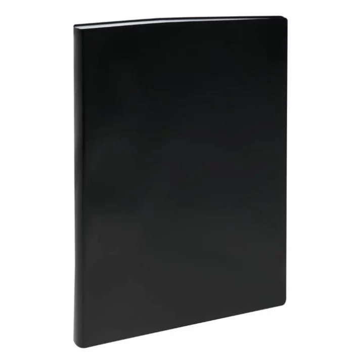 Папка с 100 вкладышами «СТАММ» предназначена для хранения бумаг формата А4. Цвет папки – чёрный. Папка изготовлена из качественного полипропилена плотностью 600 мкм с текстурой «песок». Тип скрепления – термосварка. Размер изделия составляет 310*235 мм. Ширина корешка – 30 мм. Бумагам, вложенным в папку, не требуется перфорация дыроколом. Размер: 310*235 мм; Толщина материала: 600 мкм; Формат: А4; Количество вкладышей: 100; Цвет: чёрный; Тип скрепления: термосварка; Ширина корешка: 30 мм.