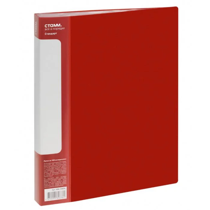 Папка со 100 вкладышами СТАММ "Стандарт" А4, 30мм, 800мкм, пластик, красная 355322
