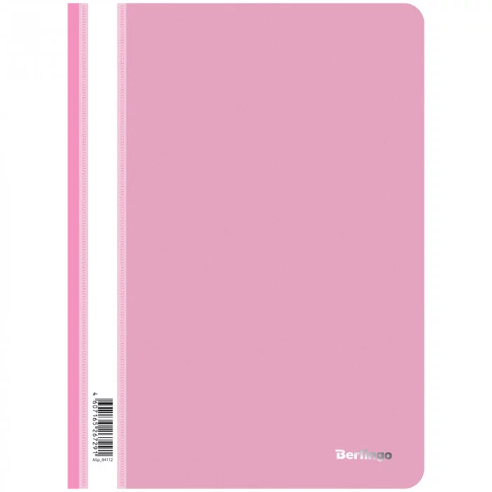 Папка-скоросшиватель пластик. А4, 180мкм, розовая с прозр. верхом BERLINGO* 184159