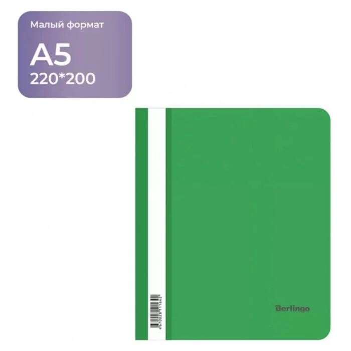 Папка-скоросшиватель пластик. Berlingo, А5, 180мкм, зеленая с прозр. верхом, индив. ШК 268379