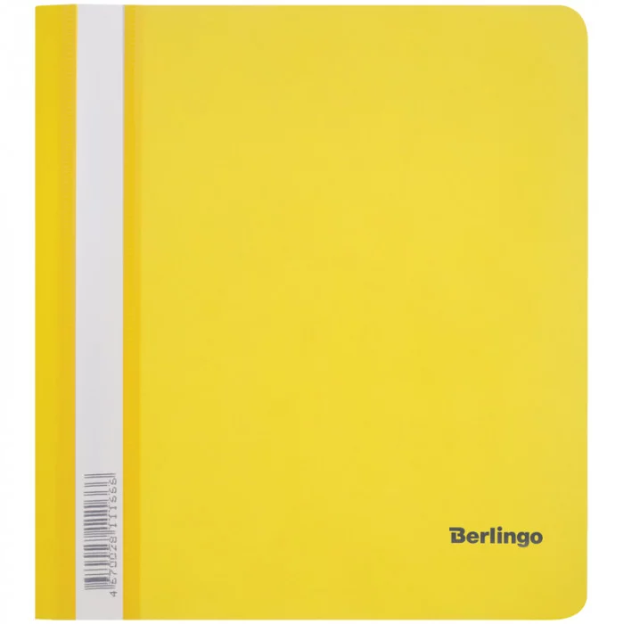 Папка-скоросшиватель пластик. Berlingo, А5, 180мкм, желтая с прозр. верхом, индив. ШК 268380
