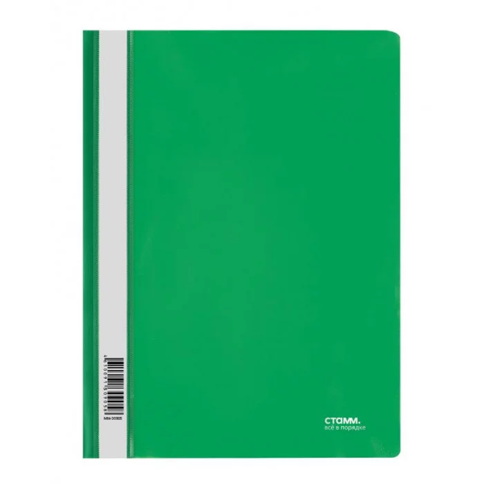 Папка-скоросшиватель пластик. СТАММ А4, 180мкм, зеленая с прозр. верхом 356764