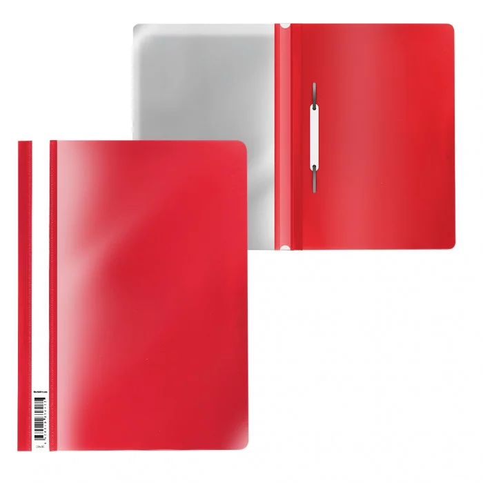 Папка-скоросшиватель формата А4 из высококачественного пластика с текстурой поверхности "апельсиновая корка", на которой не видно отпечатков пальцев и мелких царапин. Предназначена для быстрого сшивания, хранения и просмотра документов. Цвет папки – красный. Механизм - механический скоросшиватель. Папка вмещает до 130 бумажных листов. Размер - 312х230 мм, толщина - 0.14 мм. Код и баркод на каждой единице товара.
