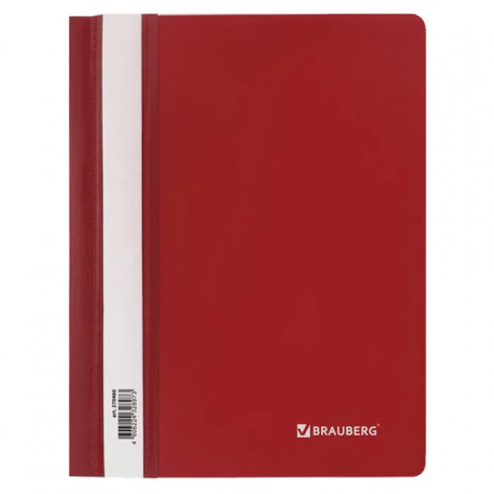 Скоросшиватель пластиковый МАЛОГО ФОРМАТА (160х22 8мм), А5, BRAUBERG, 130/180 мкм, красный, 270460