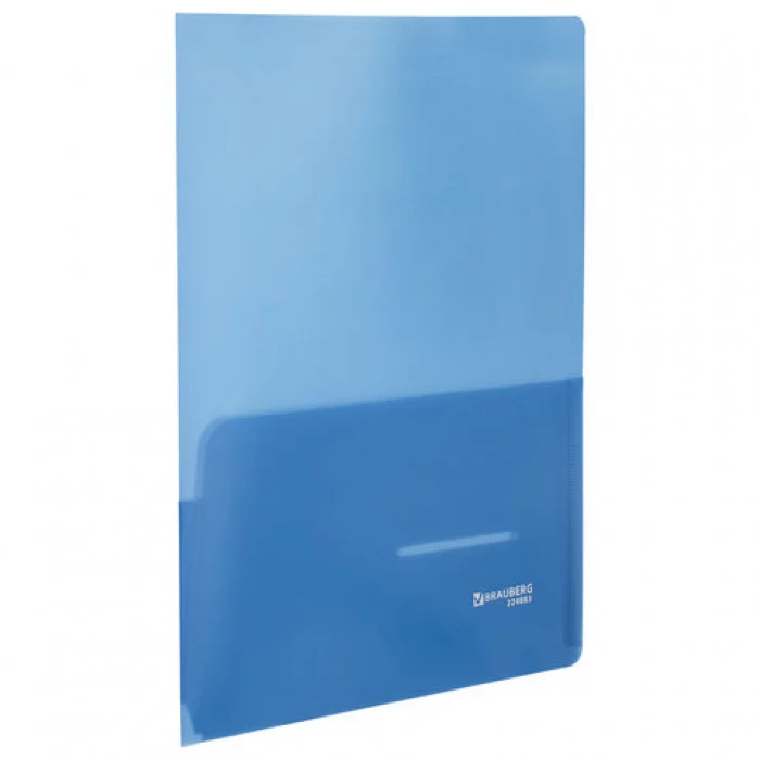 Папка-уголок с 2 карманами BRAUBERG, синяя, 0,18 мм, 224883