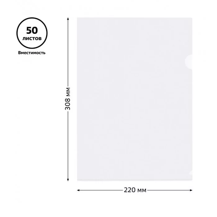 Папка-уголок СТАММ А4, 150мкм, пластик, прозрачная, бесцветная 343195