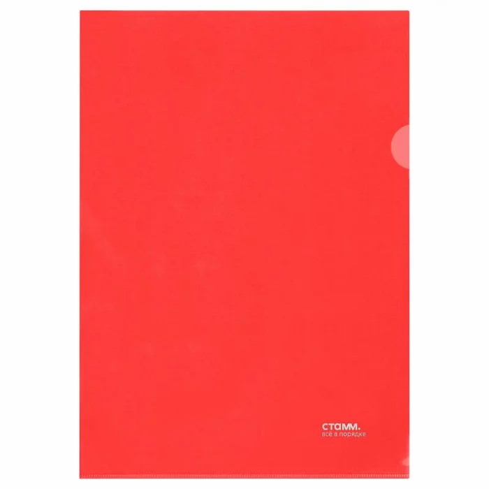 Папка-уголок СТАММ А4, 180мкм, пластик, прозрачная, красная 356787