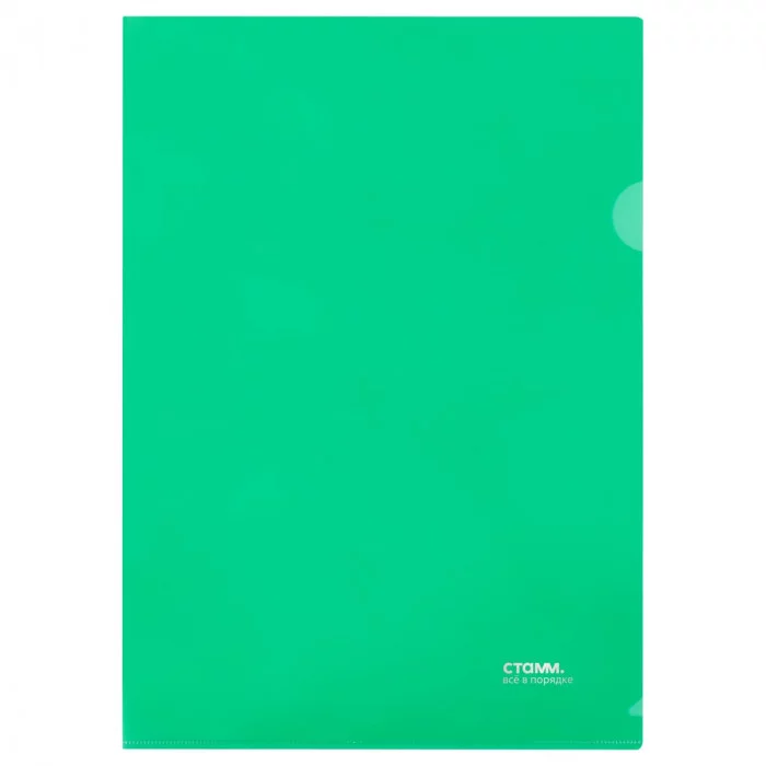 Папка-уголок СТАММ А4, 180мкм, пластик, прозрачная, зеленая 356786