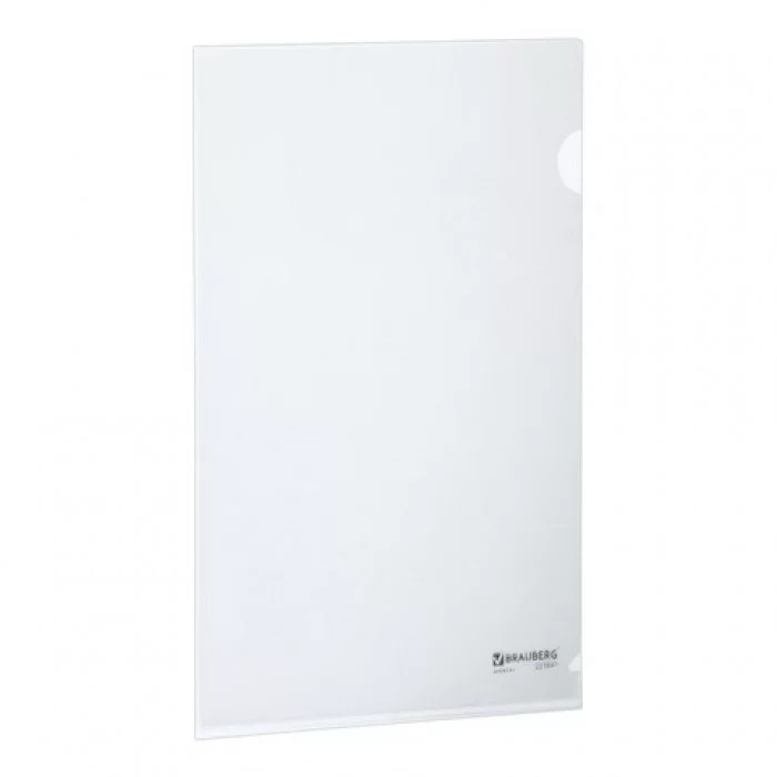 Папка-уголок жесткая BRAUBERG, прозрачная, 0,15 мм, 221641