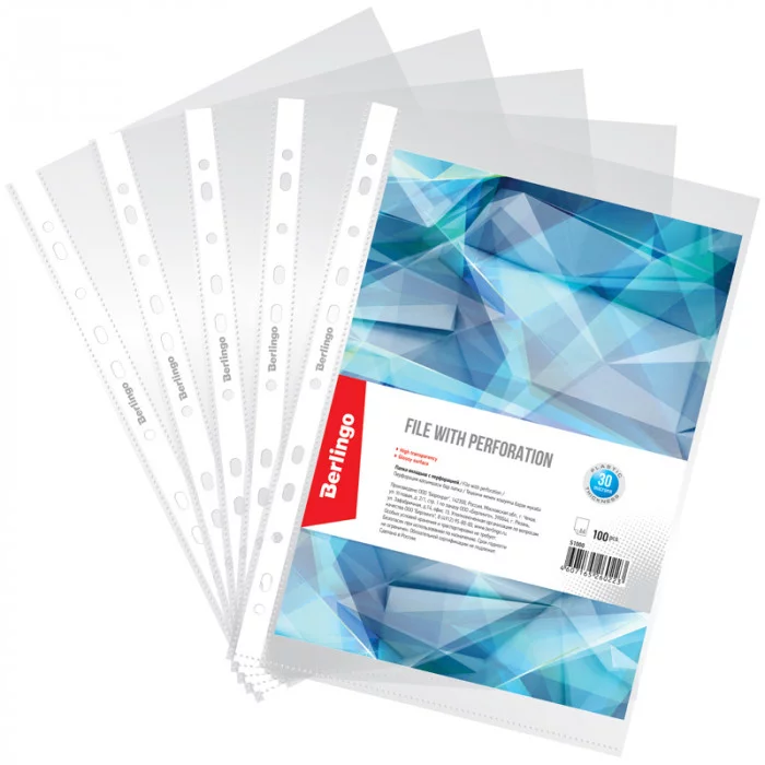 Папка-вкладыш с перфорацией Berlingo, А4, 30мкм, глянцевая BERLINGO* 109325