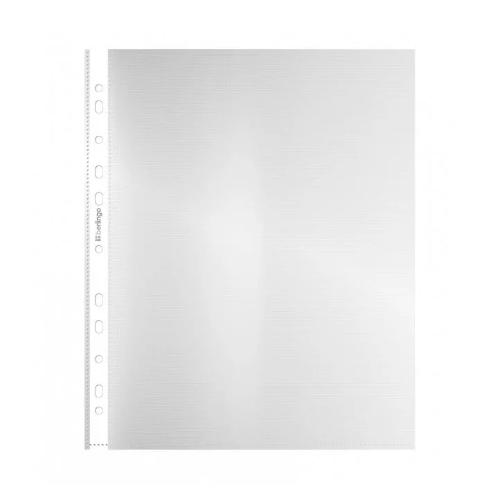 Матовые прозрачные файлы-вкладыши Berlingo Squares формата А4 размера 305*235 мм предназначены для хранения неперфорированных документов А4 в любых папках и защиты листов от внешних воздействий. Вертикальная ориентация, толщина пленки 70 мкм, вместимость файла от 50 до 100 листов бумаги, в зависимости от плотности. В упаковке 50 штук. Уникальная технология производства вкладышей, при которой используется до 40 % больше материала, благодаря чему достигается максимальная прочность каждого вкладыша. Масса каждого вкладыша 8,43 г. Уникальная рельефная фактура поверхности вкладышей позволяет легко помещать и извлекать документы, препятствует «прилипанию» вкладышей. Серебристый логотип бренда на боковой ленте.