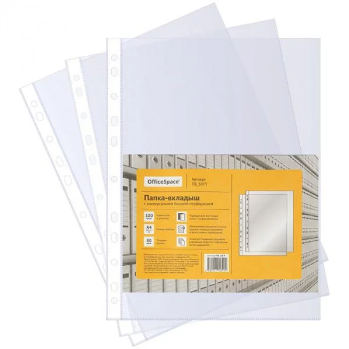 Папка-вкладыш с перфорацией OfficeSpace, А4, 30мкм, глянцевая Спейс 253788
