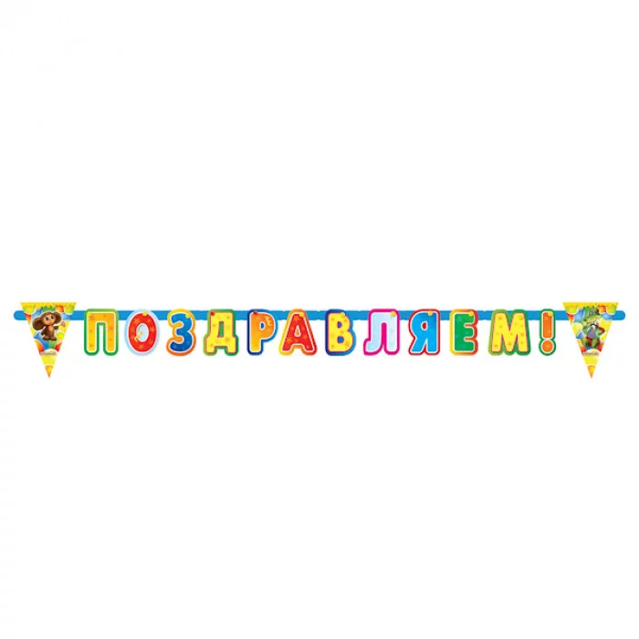 176156 ГИРЛЯНДА "ПОЗДРАВЛЯЕМ" "ВЕСЁЛЫЙ ПРАЗДНИК"ДИЗАЙН"ЧЕБУРАШКА" 2М В ПАК. (РУСС. УП.) в кор.6*24шт