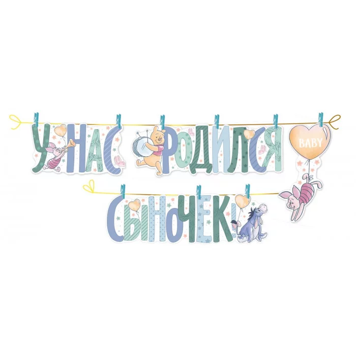 Гирлянда на прищепках "У нас родился сыночек!" Винни Империя поздравлений 43085