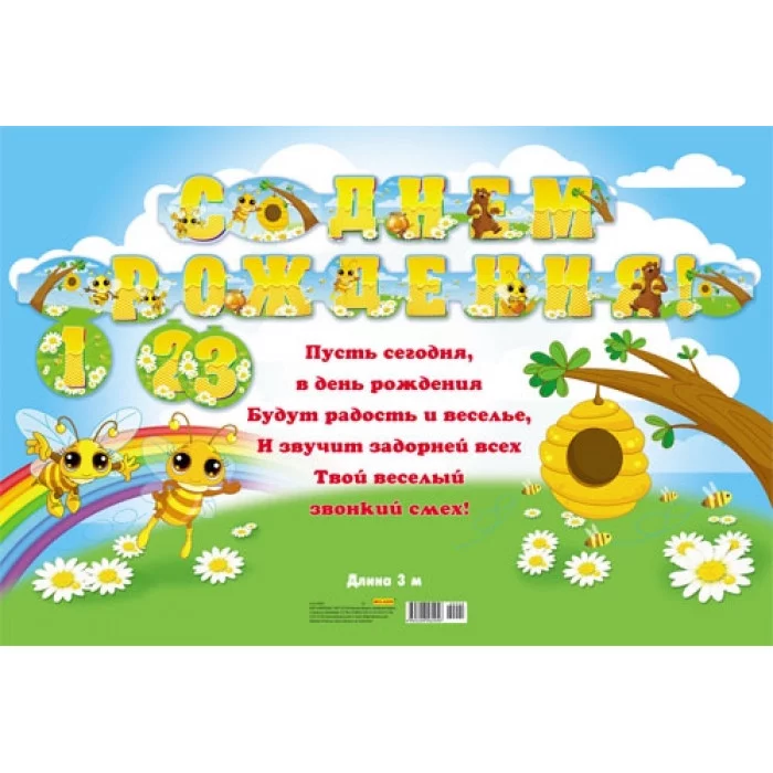 Гирлянда С днем рождения! (европодвес, подвесные цифры от 1 до 3) 9-14-0004