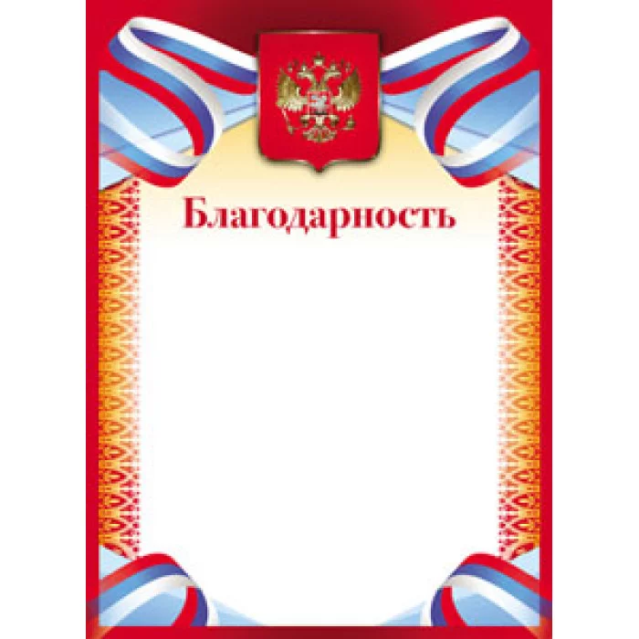 Страна производства: Россия Формат: А4 Отделка: Мелование Тип бланка: Благодарность Тематика: Официальная