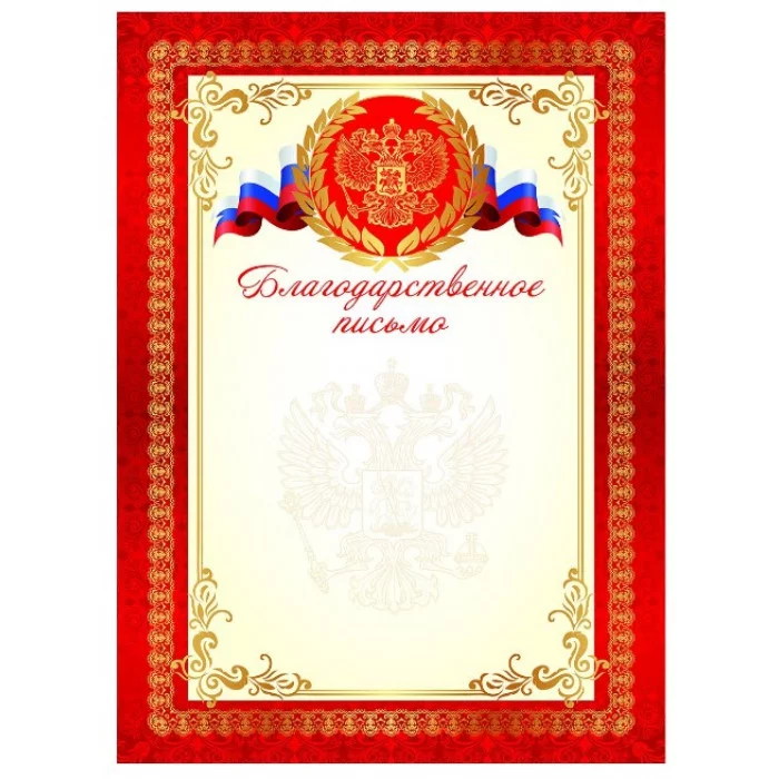 Благодарственное письмо ГБ-9307