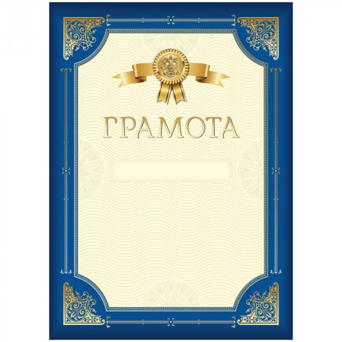 Грамота А4, ArtSpace, мелованный картон, синяя с золотой рамкой 335313