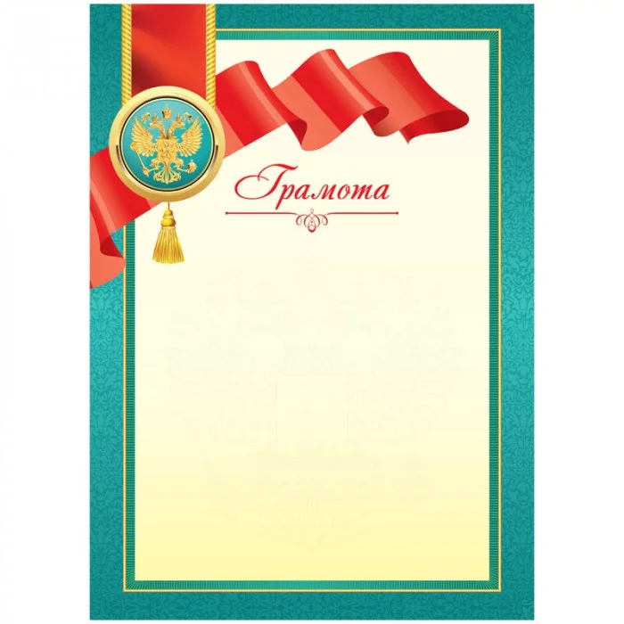 Грамота А4, ArtSpace, мелованный картон, зеленая с лентой 335311