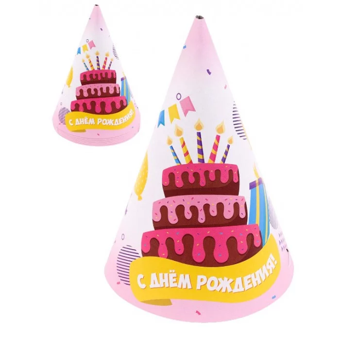 Колпак С днем рождения Торт (16 см, 6 шт) ФЛ-7568