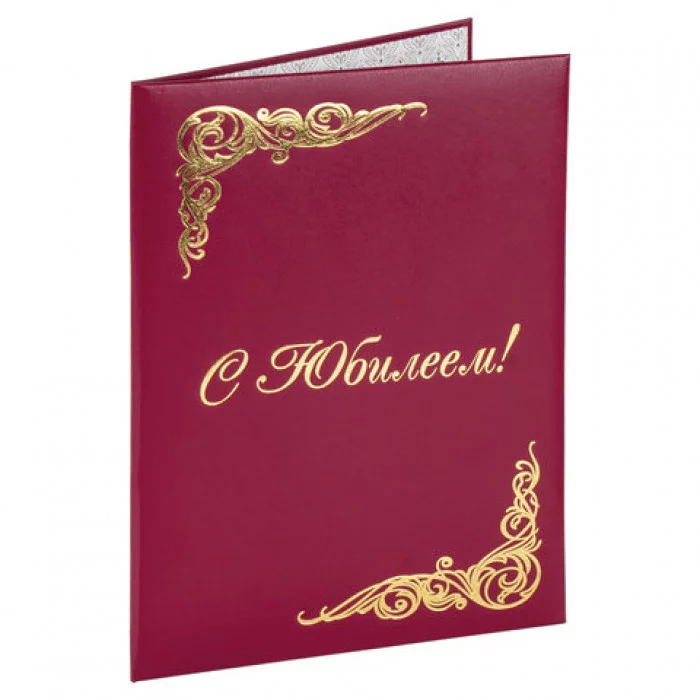 Папка адресная бумвинил "С ЮБИЛЕЕМ!", формат А4, бордовая, индивидуальная упаковка, STAFF, 129579