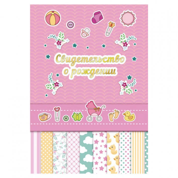 Папка адресная ламинированная "СВИДЕТЕЛЬСТВО О РОЖДЕНИИ" (для девочки), А4, рисунок, STAFF "Profit", 129587