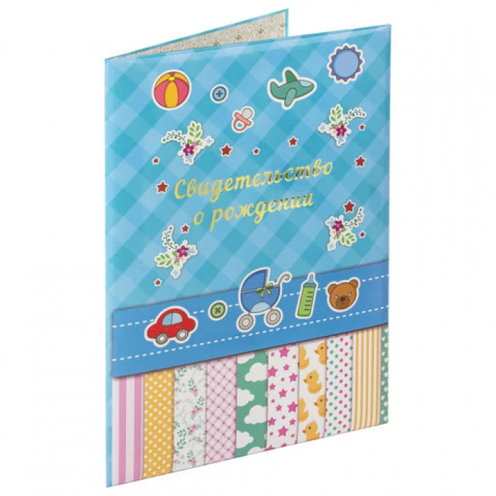 Папка адресная ламинированная "СВИДЕТЕЛЬСТВО О РОЖДЕНИИ" (для мальчика), А4, рисунок, STAFF "Profit", 129588