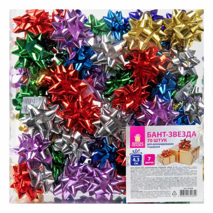 Бант-звезда d = 4, 3 см для подарка, цена за 1 шт. металлизированные цвета ассорти, ЗОЛОТАЯ СКАЗКА, 5