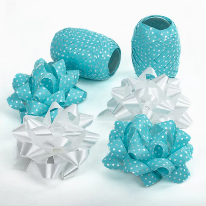 Набор для декора и подарков 4 банта, 2 ленты, горошек, цвета: белый, голубой, ЗОЛОТАЯ СКАЗКА, 591845