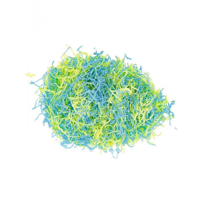Бумажный наполнитель сделает любой подарок более стильным и презентабельным! Он не только заполняет пустое пространство в коробке, но и защищает хрупкие детали от повреждений. Вес: 100 г. Цвет: микс (желтый, голубой).