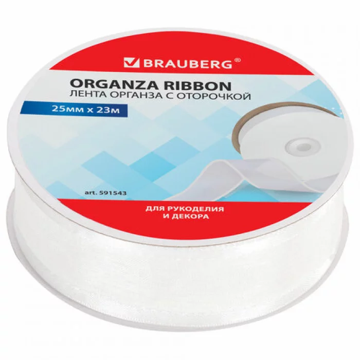 Лента из органзы с оторочкой BRAUBERG предназначена для оформления подарков, рукоделия, декора, а также она широко используется во флористике для оформления букетов и цветочных композиций. Изделие представляет собой ленту из органзы черного цвета, изготовленную из 100% нейлона с атласной оторочкой с обеих сторон, ширина оторочки – 4-5 мм с каждой стороны. Выполнена с применением атласного способа переплетения нитей. Лента шириной 25 мм (± 3%) и длиной 23 м намотана на картонный рулон с пластиковой втулкой и упакована в прозрачный полипропиленовый пакет, содержащий этикетку с краткой информацией о товаре. Ширина ленты: 25 мм. Длина: 23 м. Количество в комплекте: 1 шт.. Количество цветов: 1. Цвет: черный. Материал: нейлон. Особенности: с оторочкой Бренд - BRAUBERG. Производитель - Китай. Артикул - 591544. Штрихкод - 4606224293356
