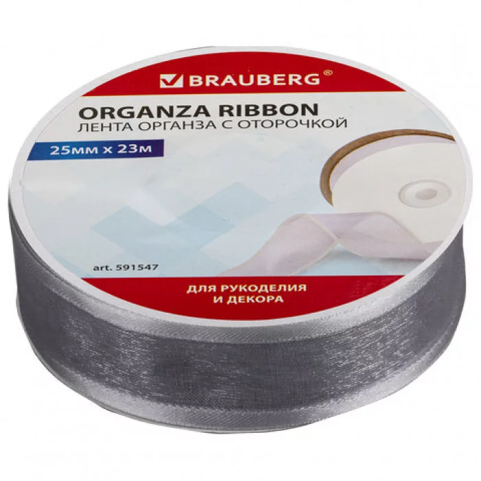 Лента органза с оторочкой ширина 25 мм, длина 23 м, серебристая, BRAUBERG, 591547