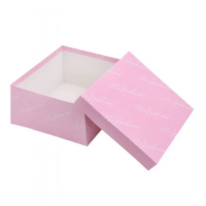 Коробка квадратная подарочная 1 шт розовая с надписью "Поздравляю" 14 х 14 х 7 см см РазборПП-4540