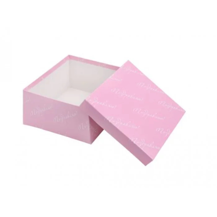 Коробка квадратная подарочная 1 шт розовая с надписью "Поздравляю" 18 х 18 х 9 см РазборПП-4540