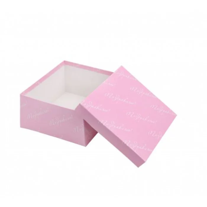 Коробка квадратная подарочная 1 шт розовая с надписью "Поздравляю" 21,5 х 21,5 х 11 см РазборПП-4540