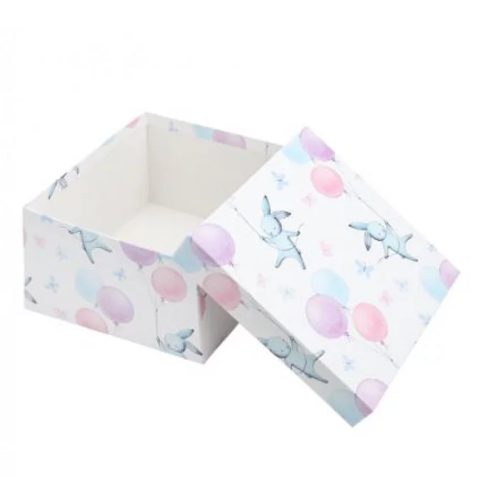 Коробка квадратная подарочная 1 шт Зайка на шаре 15, 5 х 15, 5 х 9 см РазборПП-4496