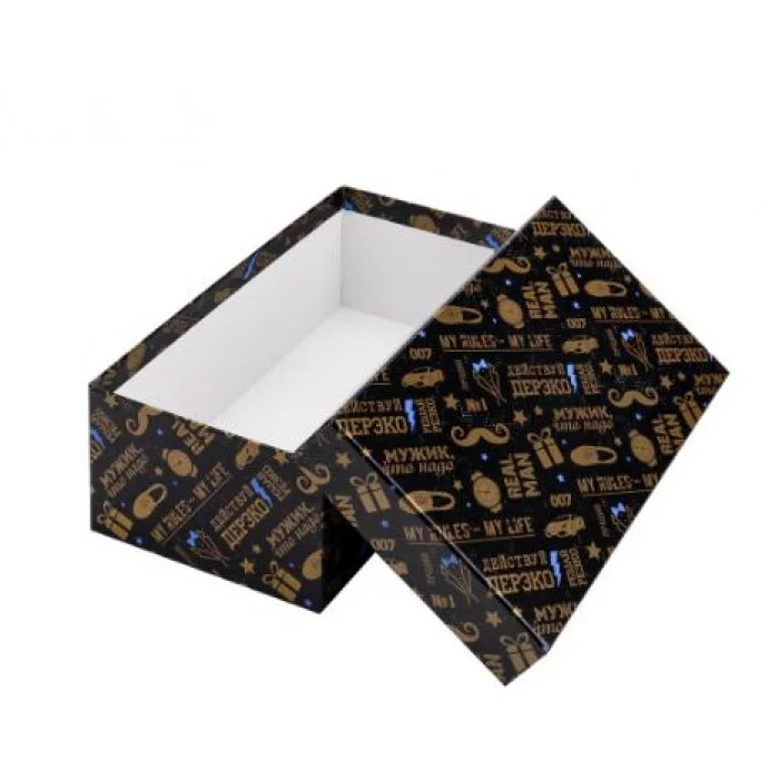 Прямоугольная коробка с интересным дизайном поможет создать яркие и запоминающиеся подарки, которые приятно дарить и получать. Лёгкая и прочная коробка защитит содержимое от повреждений и сохранит аккуратный внешний вид в течение длительного времени, что позволит использовать её ещё и дома для хранения полезных мелочей.