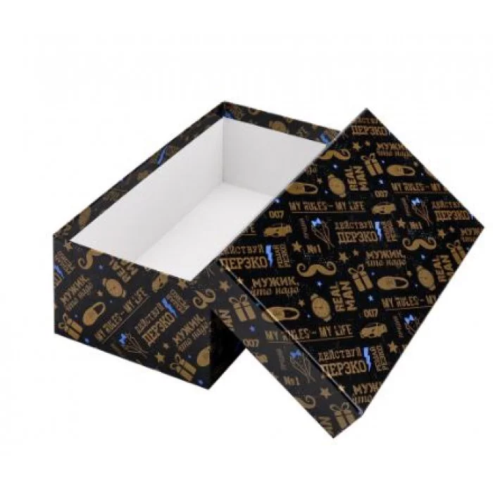 Прямоугольная коробка с интересным дизайном поможет создать яркие и запоминающиеся подарки, которые приятно дарить и получать. Лёгкая и прочная коробка защитит содержимое от повреждений и сохранит аккуратный внешний вид в течение длительного времени, что позволит использовать её ещё и дома для хранения полезных мелочей.