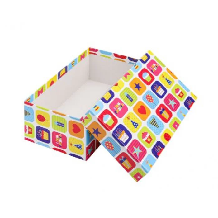 Прямоугольная коробка с интересным дизайном поможет создать яркие и запоминающиеся подарки, которые приятно дарить и получать. Лёгкая и прочная коробка защитит содержимое от повреждений и сохранит аккуратный внешний вид в течение длительного времени, что позволит использовать её ещё и дома для хранения полезных мелочей.