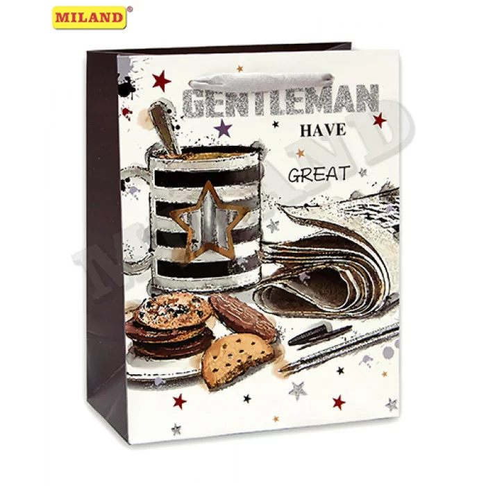 Dream cards Пакет подарочный с глянц.лам.и глиттером 32х26х12 см(L)Завтрак джентльмена,210г ПП-0210