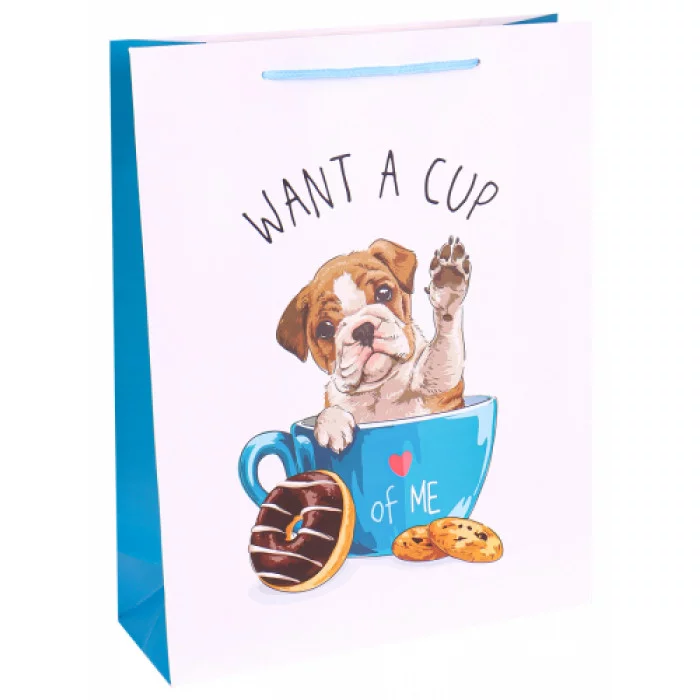 Dream cards Пакет подарочный с мат. лам. 26х32х10 см (L) Щенок в чашке, 210 г ППК-5394